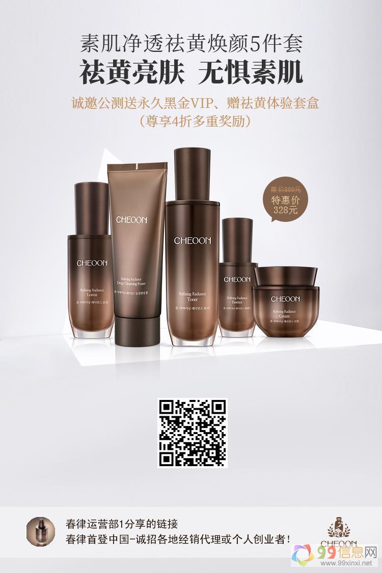 为回报中国客户的厚爱,已上线公测的CHEOON春律自营电商平台优惠活动持续升级,6月30号前往春律平台注册即可获赠会员身份,免费抽奖现金红包与VIP升级机会,尽享优惠折扣9~9~信~息~网。停驻青春容颜,尽享永久加盟红利,进口韩妆品牌CHEOON春律诚邀更多中国伙伴共赴美肤之旅。